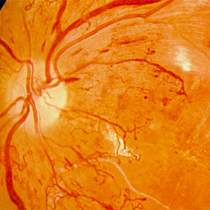 Diabetic micro-angiopathy affects the capillaries in the eye just like it does elsewhere in the body leading to neuropathy and nephropathy. At first, the ischemia causes non-proliferative retinopathy. When the peripheral retina (where it’s more vulnerable) gets too ischemic, it releases VEGF and other angiogenic factors leading to neovascularization and proliferative diabetic retinopathy.