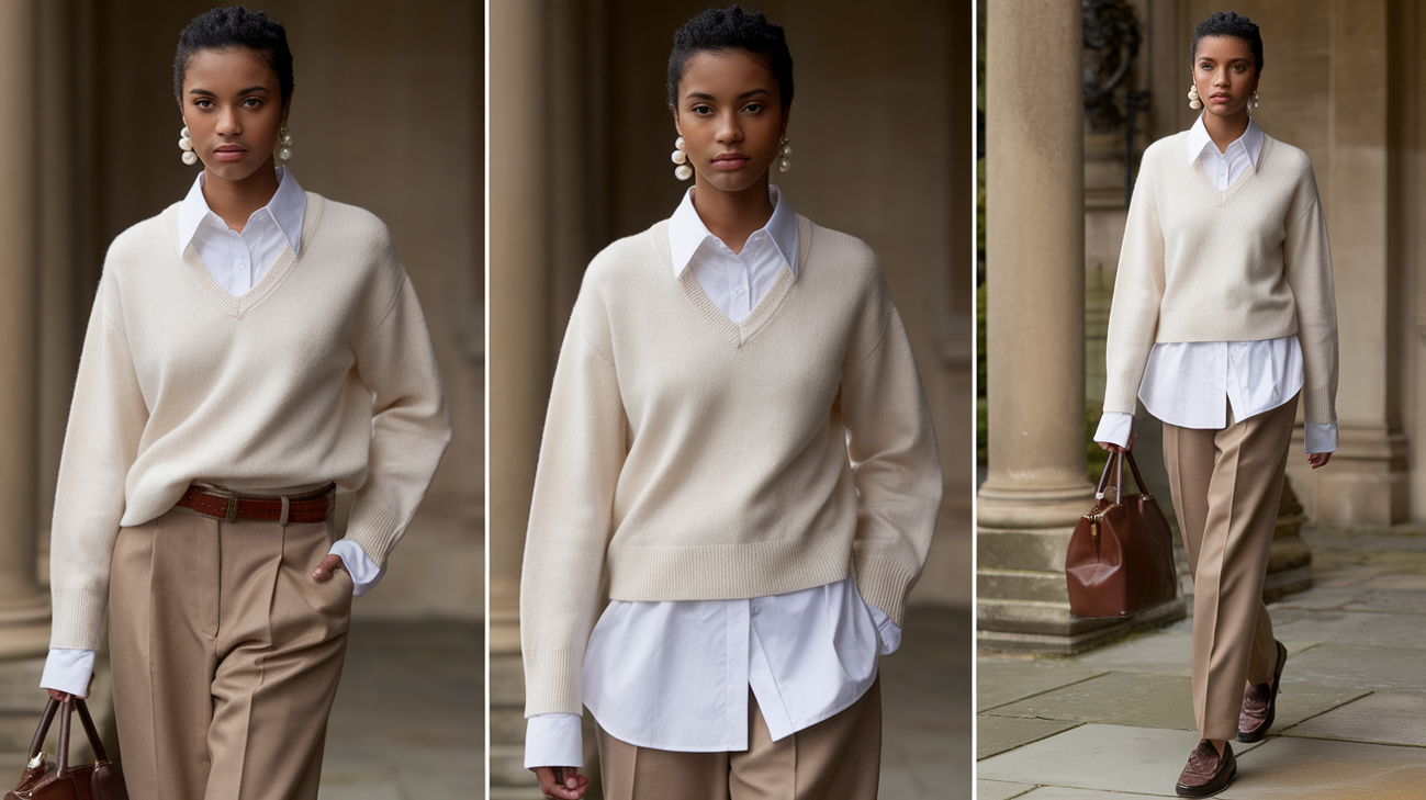 Old Money Outfits with Polo Sweater and High-Waisted Trousers