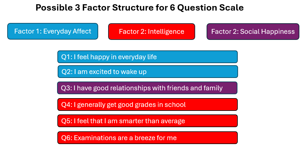 And that’s the point! Based on reading the questions alone — there can be multiple interpretations of which items belong to which factor — and how many factors the scale is measuring in the first place. Factor analysis helps us find the “best” factor structure for the scale based on (several) quantitative metrics. Which is what makes it such a powerful tool!