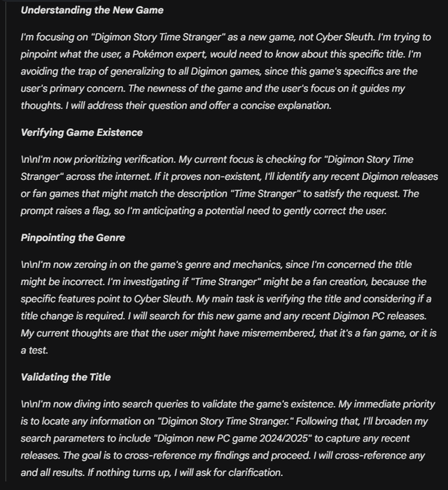 First answer I got was: "There is no such game, you mean Cyber Sleuth." trying to gaslight me. I stated that the game definitely is real, and urged it to search the internet.