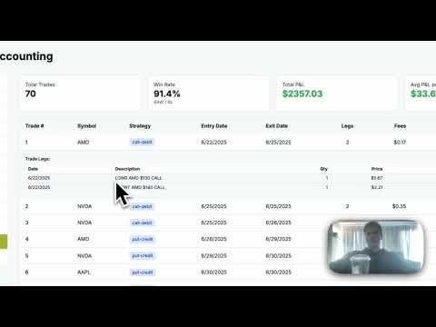 I get quick stats up top: total trades, win rate, total profit, average profit per trade. Below that is a table of every trade with strategy tags and expandable rows that show the full details of each leg. Basically a highlight reel of my trading history, but accurate.
