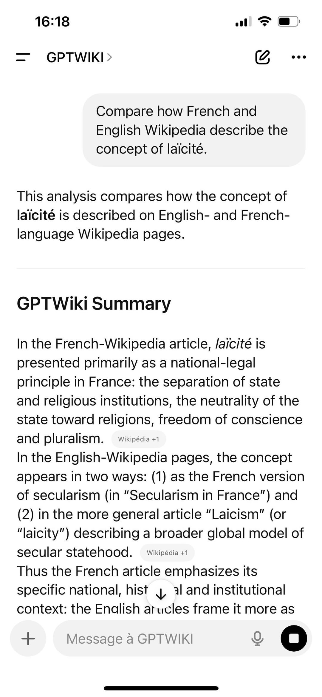 Then I created GPTWiki a bilingual assistant (FR/EN) who doesn't try to be right,
