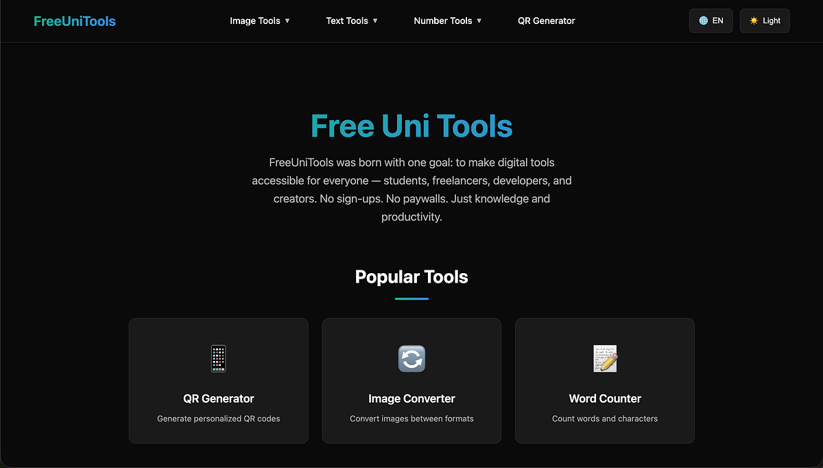 That’s how FreeUniTools was born — a simple, privacy-friendly collection of online tools designed for students, freelancers, developers, and creators.