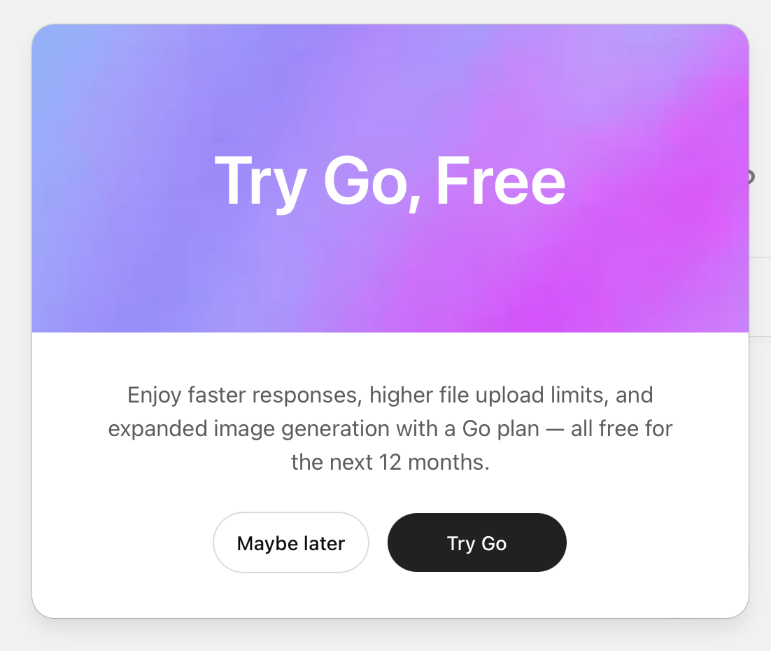 Suddenly, I had a ChatGPT Go subscription.