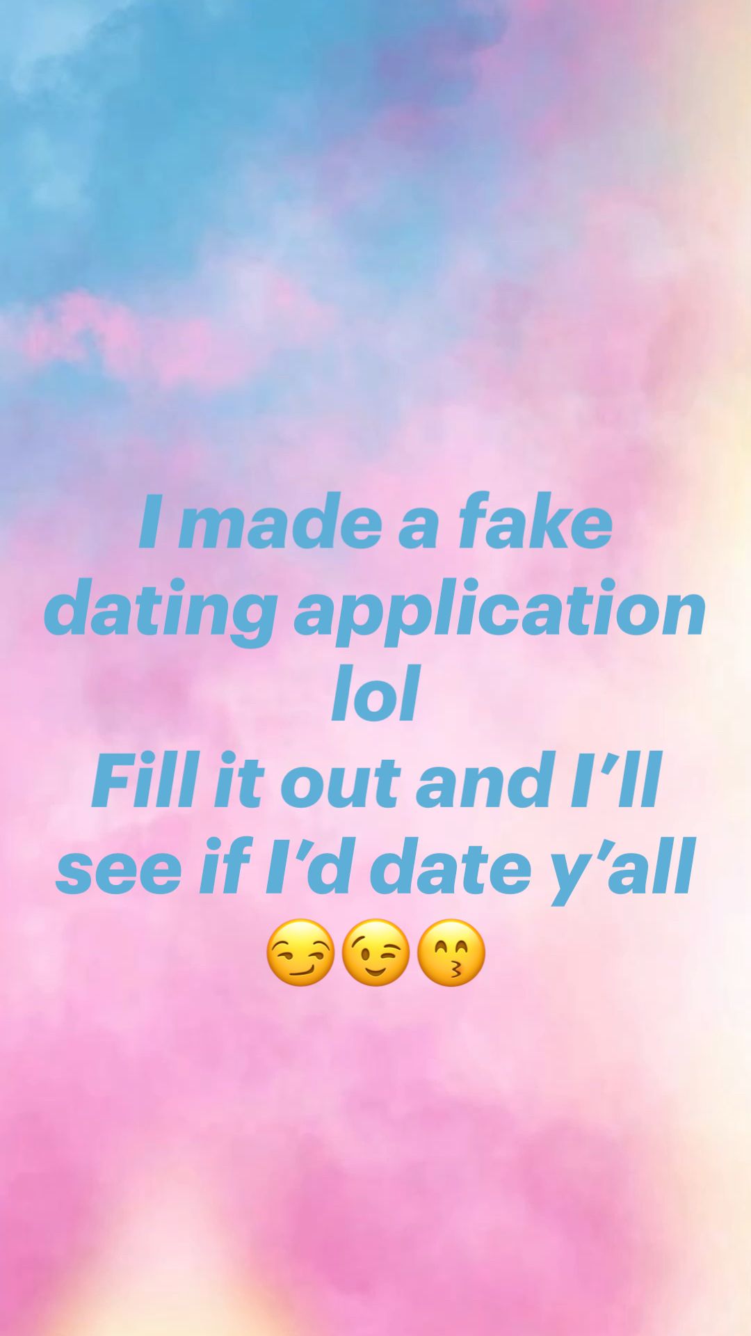 I made a fake dating application lol Fill it out and Iโll see if Iโd date yโall ๐๐๐ Like this:Like Loading... Post navigation Giant Rei sprays blood into spaceI Asked CHATGPT why you arr utterly useless and the answer was shocking