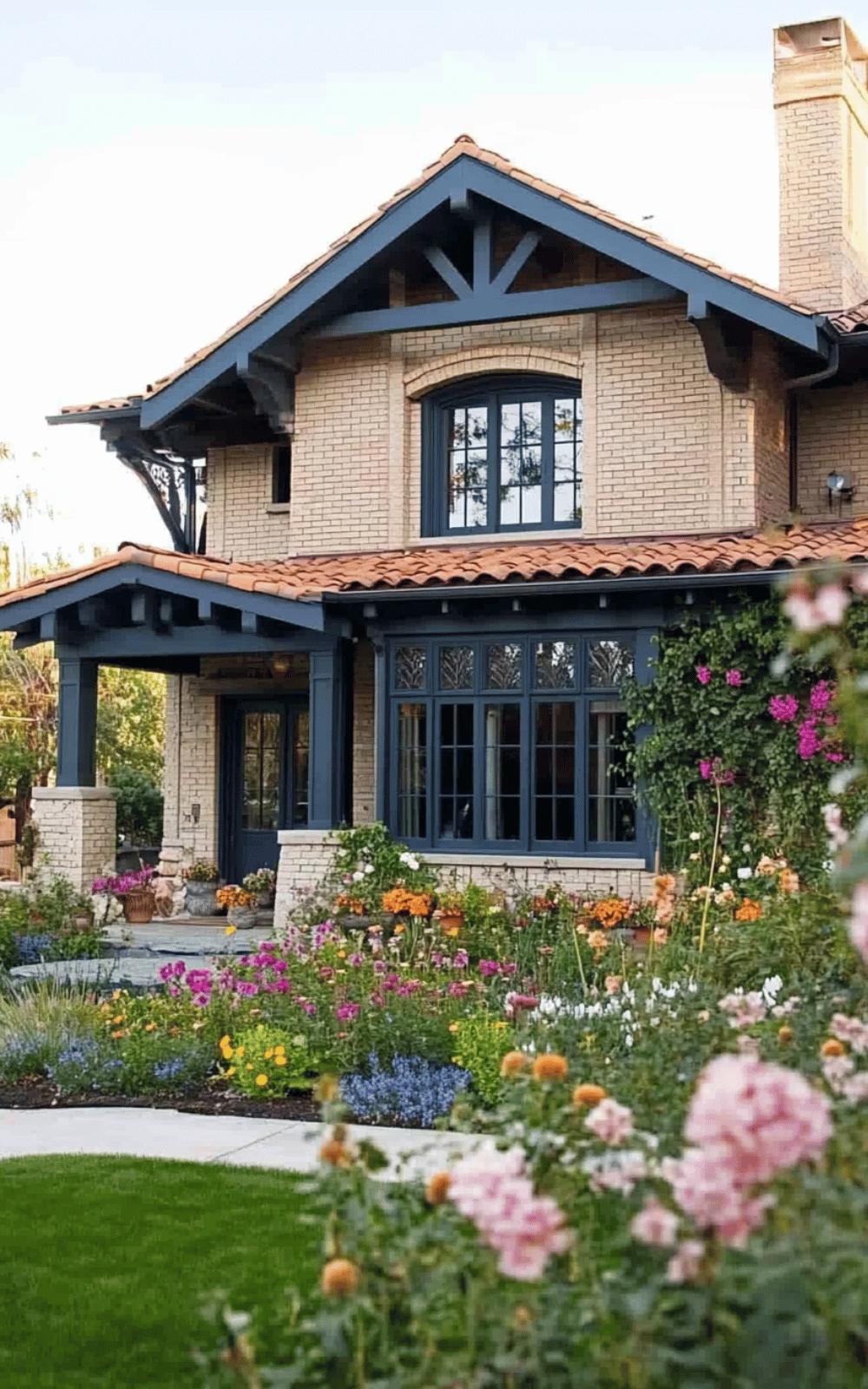 Your home’s exterior can blend beige brick with red brick accents to create a sophisticated look. The warm tones complement each other naturally, making the combination a timeless choice.