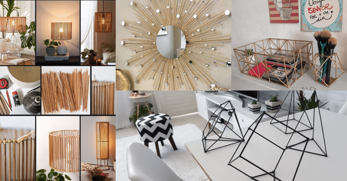 Com os palitos de churrascos pode fazer peças geométricas que vão transformar completamente a decoração da sua casa.