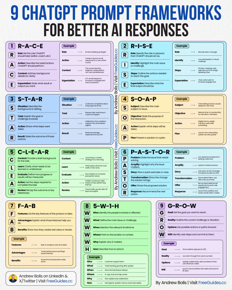 Improve ChatGPT responses with these 9 frameworks | Andrew Bolis posted on the topic