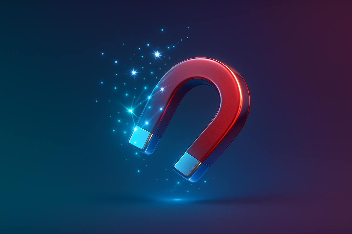 Glowing magnet attracting sparks, symbolizing AI-powered hooks that capture attention and drive action on Medium.