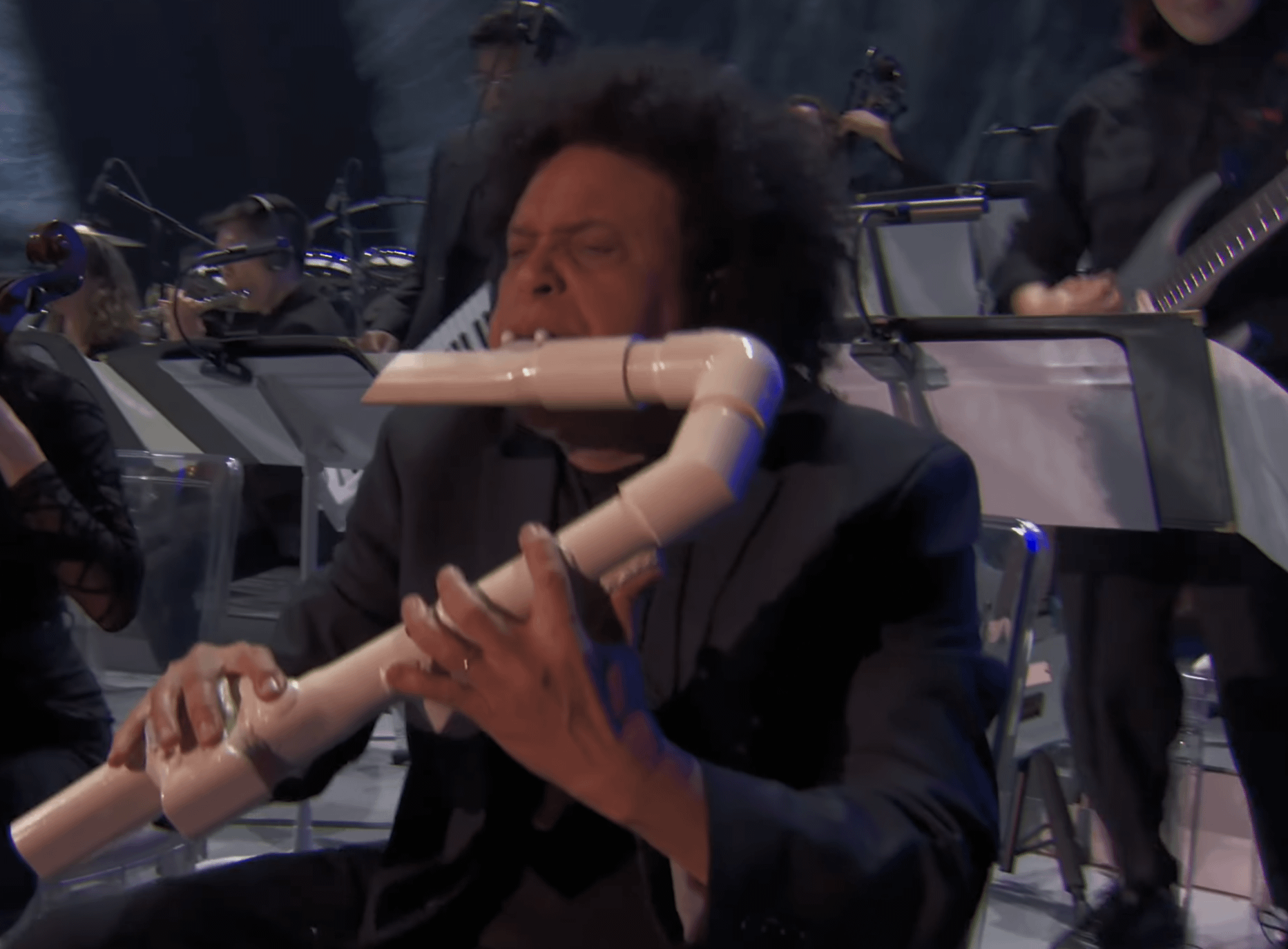 At about 3:27:00 in the 2025 Game Awards, they're playing music leading up to the game of the year decision. And they keep going back to this same dude who starts off seemingly playing a clarinet, but then a flute with some kind of odd mouth attachment, and then they switch to a variation of E33 music while the dude is suddenly playing a literal PVC pipe. What the hell is going on?? I basically fell off the couch laughing and had to come here and ask.