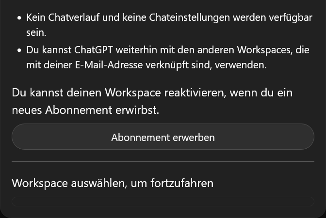 after cancelling my subscription im locked in the /deactivated screen and can't choose the option to choose a workspace to continue with. Does anybody have any experience with this issue (browser plug ins that could mask this feature are all deactivated and I've had a previous workspace that was not a premium account)?