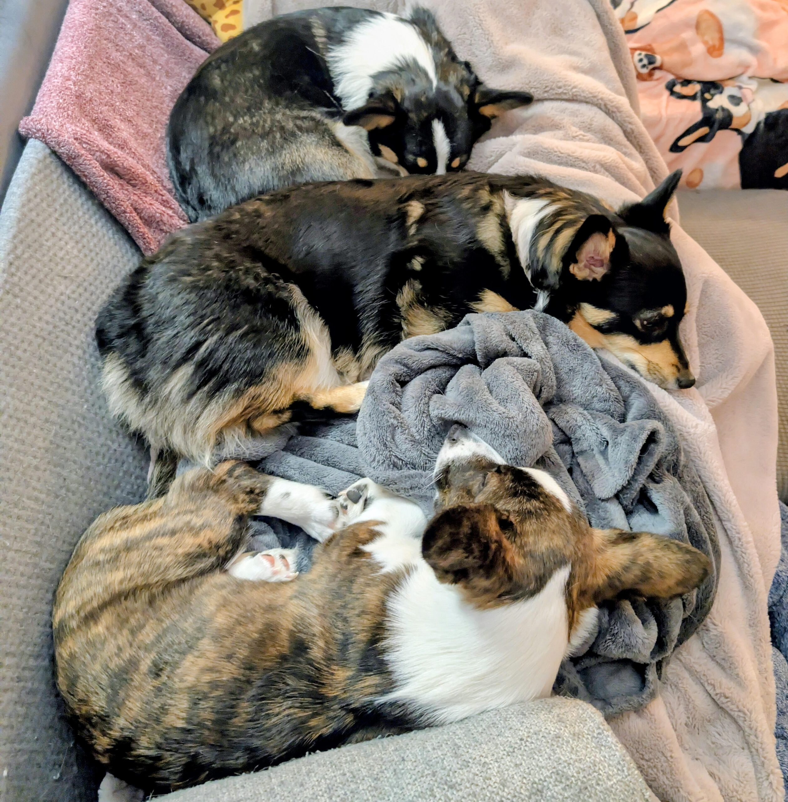It’s -4 degrees F outside and these 3 corgi pups are keeping me, and each other, nice and warm. Sending you all warm puppy snugs!