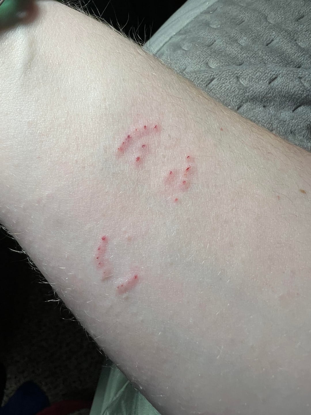 Just kidding lol. But in all seriousness I did accidentally spook my normally very chill BP, Honeycomb, today. Totally my fault- I normally don’t handle her after her tank lights go out but I will sometimes feed her, and I carelessly stuck my hand in to push aside some faux foliage to do some tank clean up when I got tagged! Not sure if she thought I was food, it was by her normal feeding spot, but she released very quickly and seemed a bit confused after lol. I pulled her out to finish cleaning and she chilled with me for a while after I cleaned out her tank, back to her normal self. Not too bad for a first snake bite! More shocking than painful, just like I’d heard, and just felt a bit itchy after.