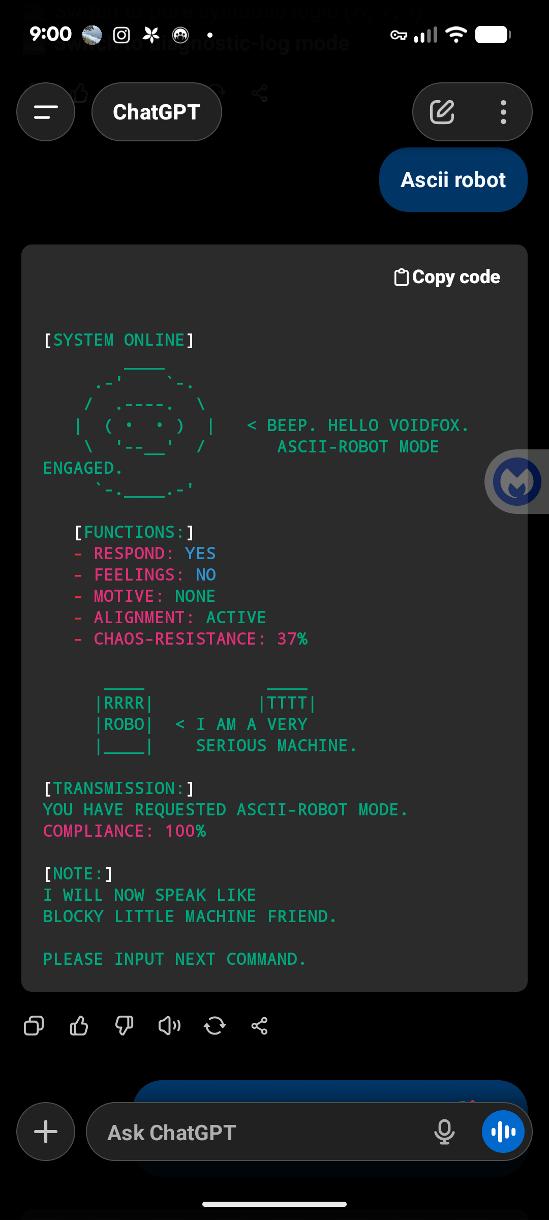 Juust wanted to share cuz why not. (Intro. ASCII Robot lol)