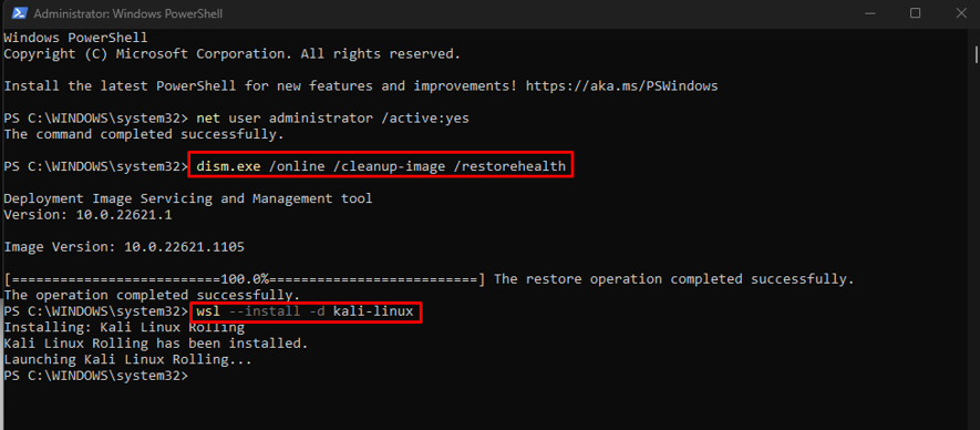 PS C:\WINDOWS\system32> wsl --install -d kali-linux