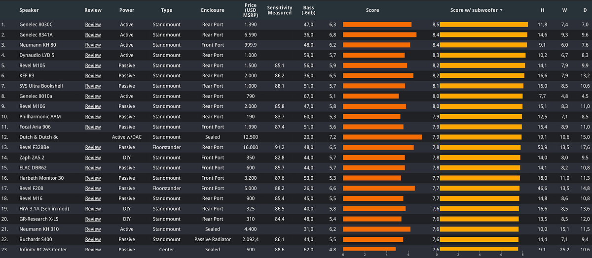 But what the table does not show is what subwoofer plays best with which speaker. And that may be also something combinatorically quite costly if not done automated in some way.