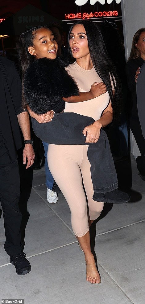 Kim’s eldest daughter North, 11, was not present for the occasion. Kim and her ex Kanye, 47, are currently embroiled in a ‘nuclear’ war over North, after the rapper included their child on a track alongside Diddy, who is currently in jail awaiting trial on charges including sex trafficking.
