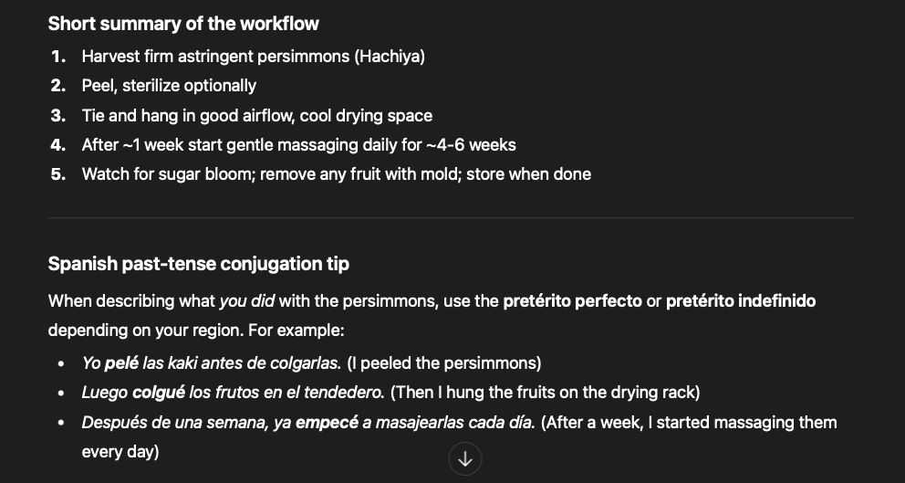 Language Learning: I used custom instructions to have ChatGPT drop in some Spanish tips into all of its responses. It’s working well!