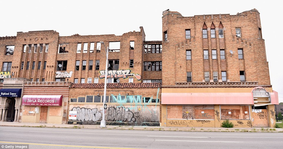 Many of the Michigan city’s buildings are now covered with graffiti and sit eerily empty – like part of a ghost town