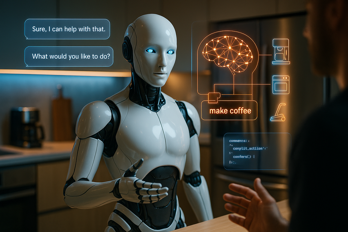 Picture this: You walk into your kitchen and say, “Robot, please make me a cup of coffee and clean up afterwards.” The robot doesn’t just follow a pre-programmed sequence — it actually understands what you want, figures out how to do it, and adapts when you move the coffee cup mid-task.