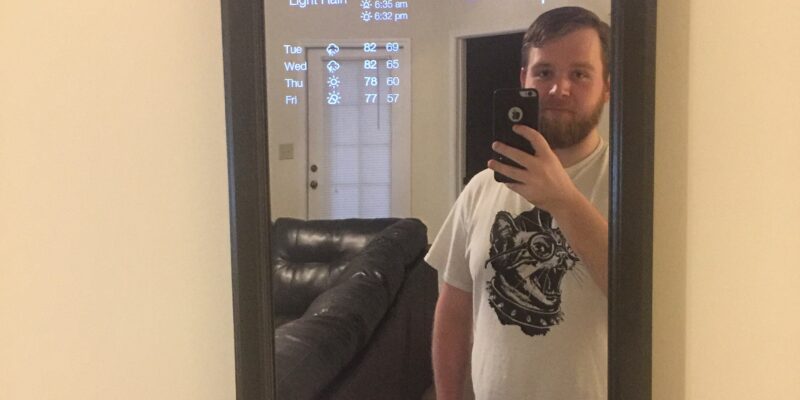 It’s not the first mirror of its type, and Bradley admits that he’s taken some cues from a previous project by Michael Teeuw (see more details about it on Michael’s blog), taking the concept and bringing it down to a more beginner level for himself so he could learn more about web development.