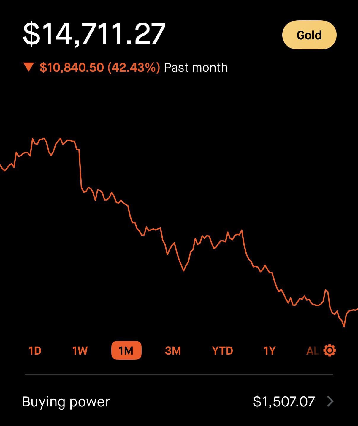 Stocks I was in were beat down but also speculative. Still haven’t deleveraged a whole lot yet because I think it’ll bounce back up but so close to margin call