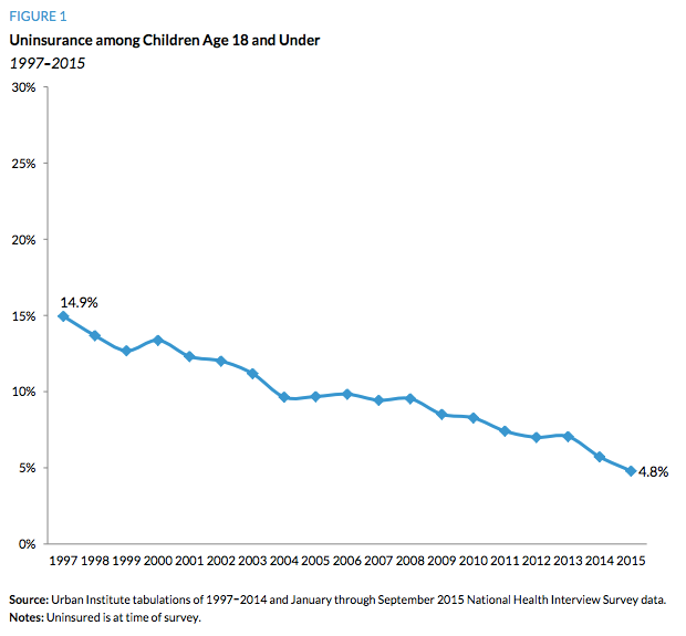 Source: Urban Institute, “Uninsured Among Children 1997–2015,” April 2016.
