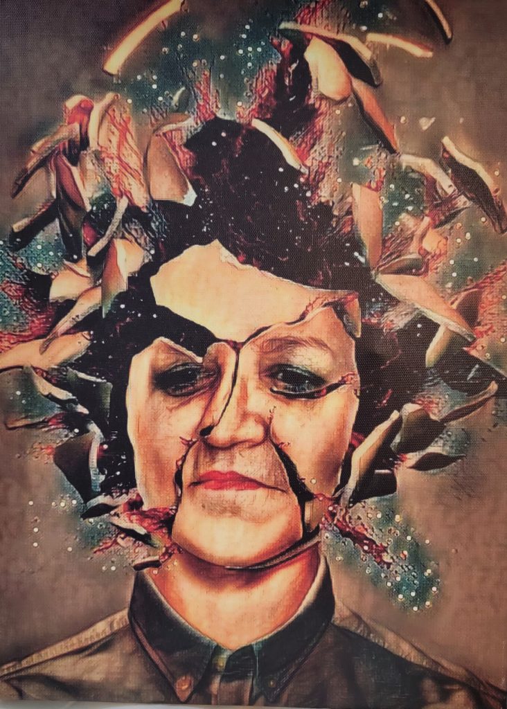 This is a digitally enhanced self-portrait image created by two combined photographs. Inspired by triptych art.
