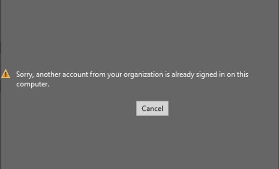 However, in my case I received an error when the Excel App in Windows tried to open the file. Sorry, another account from your organization is already signed in on this computer.