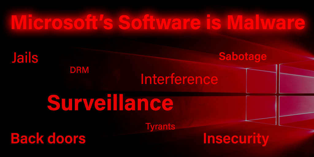 Microsoft’s Software is Malware by GNU Operating System sponsored by the Free Software Foundation.