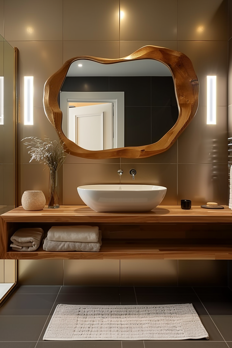 - Implement tall storage units or floating shelves to smartly utilize vertical space and enhance the bathroom’s functionality and aesthetic appeal.