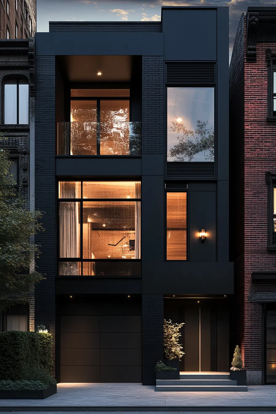 Imagine stepping onto a quiet street at dusk, your eyes immediately drawn to a striking silhouette against the fading light: a sleek, modern black house exterior that seems to absorb the very essence of twilight. As you approach, the warm glow of interior lights spills invitingly through expansive windows, creating a mesmerizing contrast against the dark facade. Your fingers tingle with anticipation as you reach for the front door, eager to explore the secrets this bold and beautiful home holds within its obsidian walls.