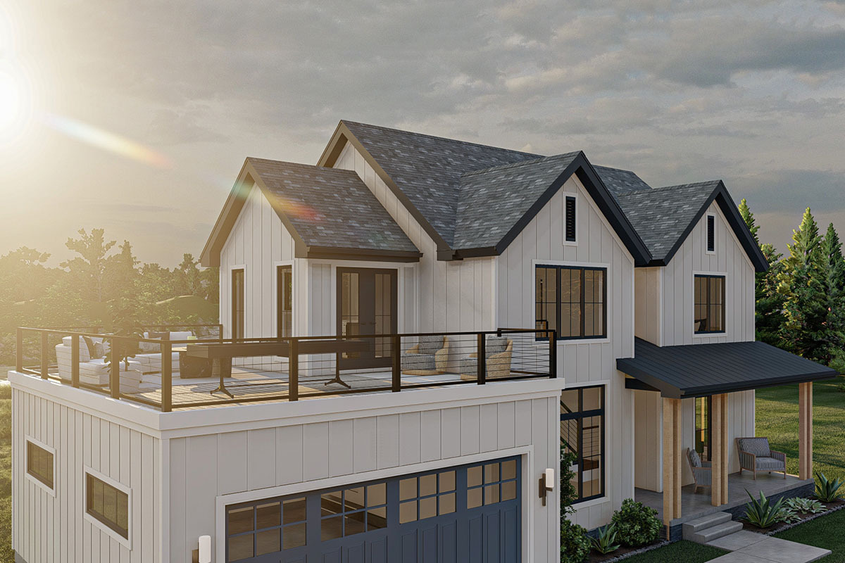 This home provides fantastic outdoor entertainment space. The upper level of this Modern Farmhouse features a loft area and a wet bar. Arguably the most unique feature of Plan #623024DJ is the party deck located off the second floor loft. This spacious balcony is a great area to enjoy guests and relax on a warm sunny day.