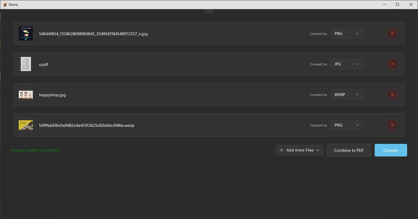 Hi windows users. You have probably used online tools to convert Images and Pdfs to different formats (Image to Pdf/Image to Image/Pdf to Image). Now, Monk will let you do the same, but offline. Its a free tool. enjoy it!