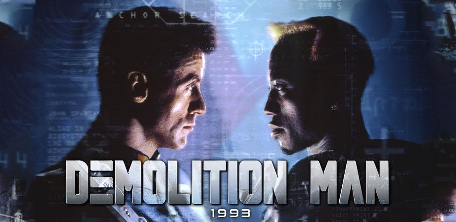 Because of all these stimulating questions regarding plot holes, futuristic speculation of things to come (and have come to pass), amazing production design, and wonderful physicality and line deliveries by the two leads in a star-studded cast, Demolition Man consistently remains one of my favorite sci-fi films.
