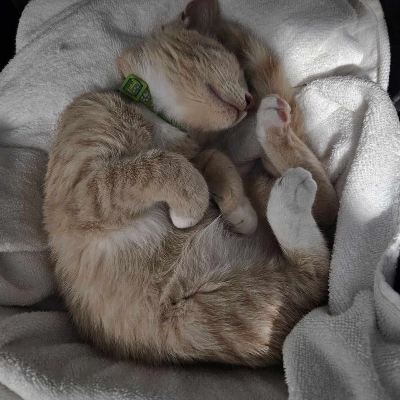 (Pic is when he was new and cuddled up in his favorite closet spot 😻)