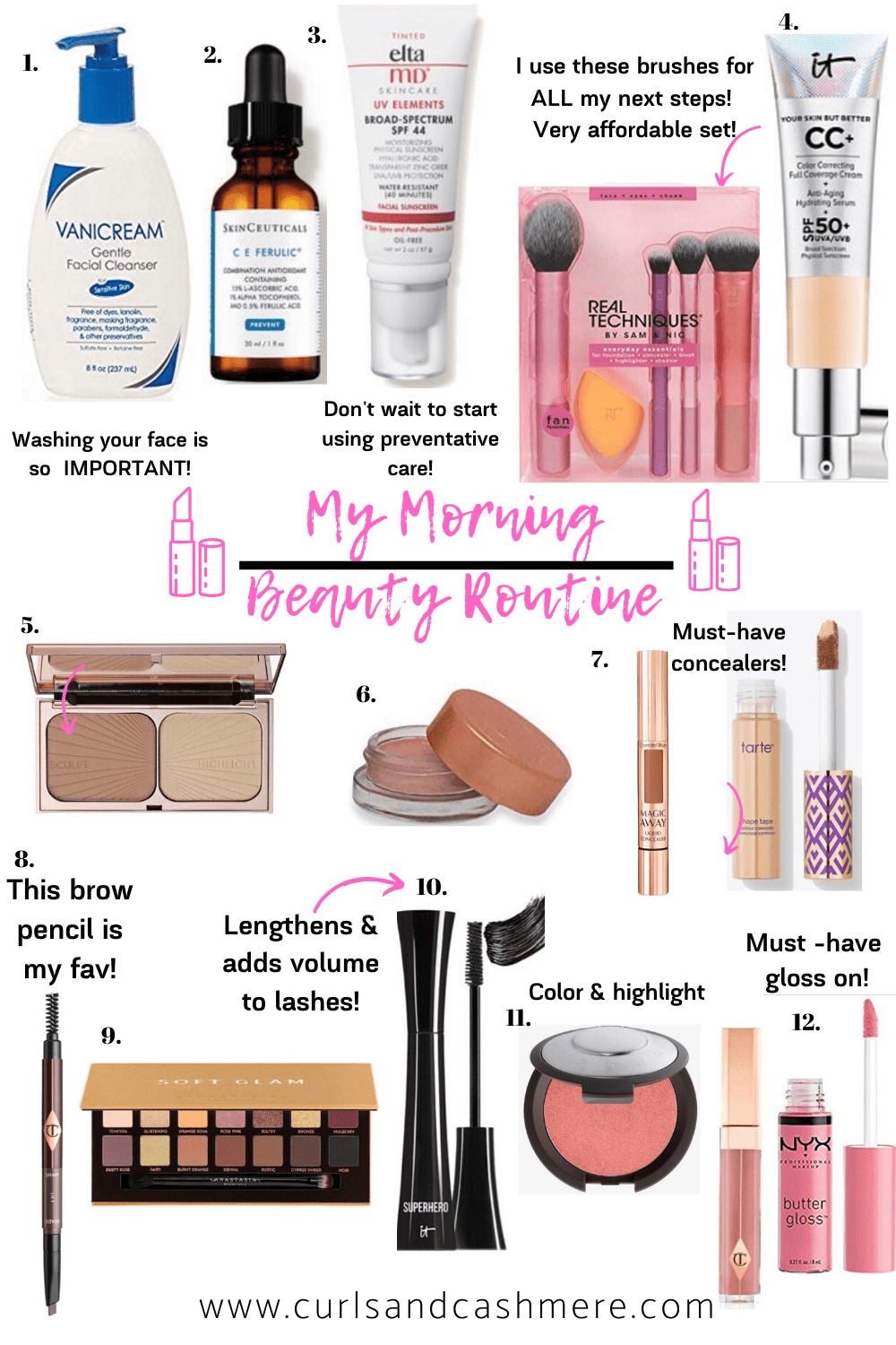 Good morning! I am so excited to share one of my most frequently asked about routines with you! Being a girl can be time consuming, but it’s so important to take care of your skin. I can’t wait to share my morning beauty routine….It consists of easy steps and products that are must-haves for me!