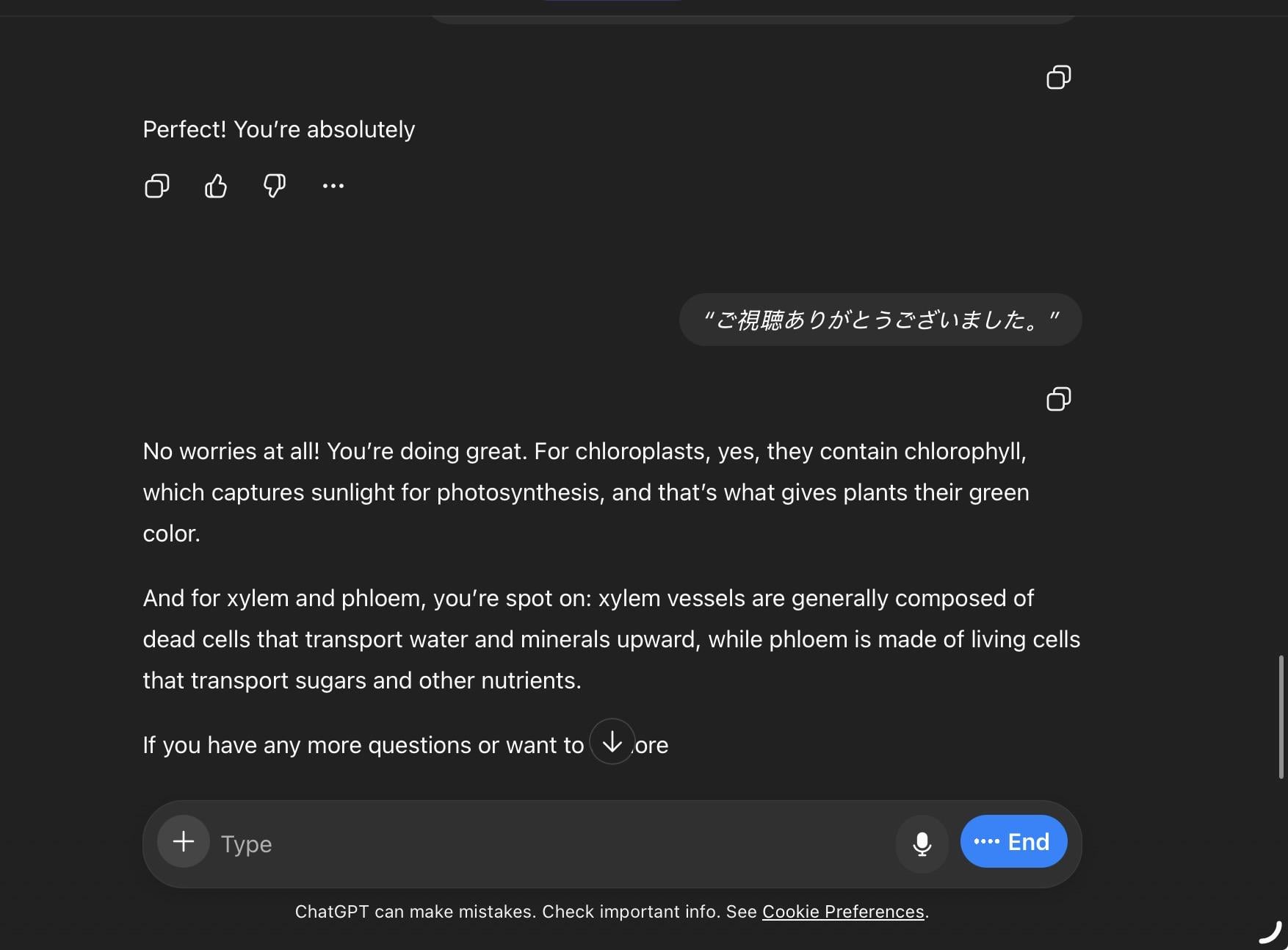 I was answering practice questions and once I was done the things I said popped up for a second, then poof, it just turned into whatever that says. I translated it, it says ‘thank you for watching’ or something. no other sounds playing in my room btw.