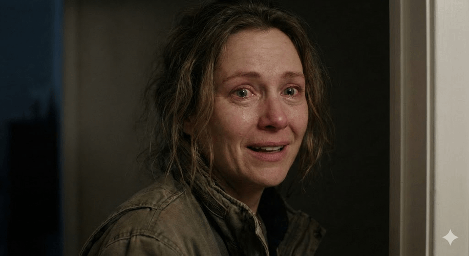 prompt: we see a close up of a person's face as they walk into a room. they are looking past us at something profound. we don't know what it is. however, we can read on their face a mixture of emotions, happiness, strong emotional upheaval, shock, relief