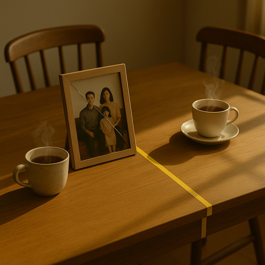 A person erases themselves in the name of love, and another family smiles in the space they vacated.