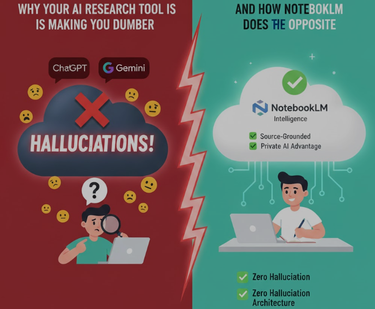 - 🔒 Notebook LM’s Fix: It’s a “walled garden” AI. It only uses the documents you upload, making it 100% source-grounded.
