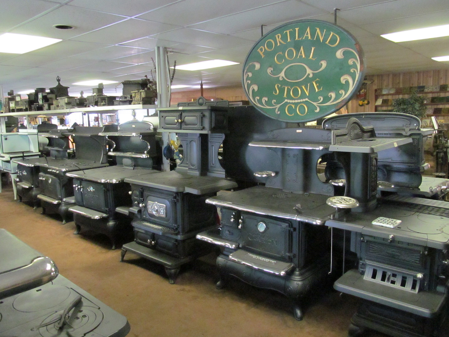 Wood cook stoves at Bryant Stove and Music in Maine.