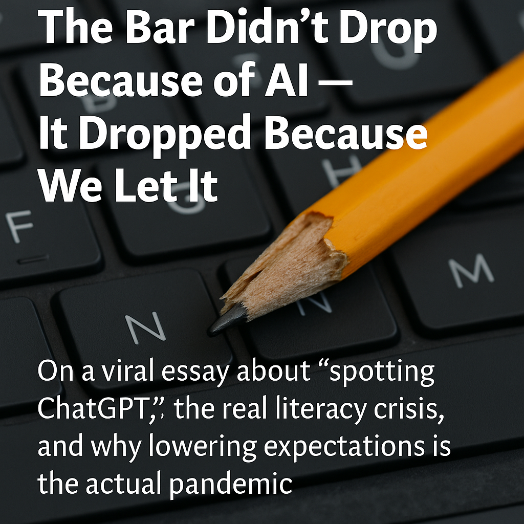 On May 16, 2025, a Medium piece titled “I’ll Instantly Know You Used ChatGPT If I See This” made the rounds. Its premise was simple: students ask AI to make their writing “more human,” and that’s supposedly “dumb.” The author boasted that he could always tell when ChatGPT wrote something.