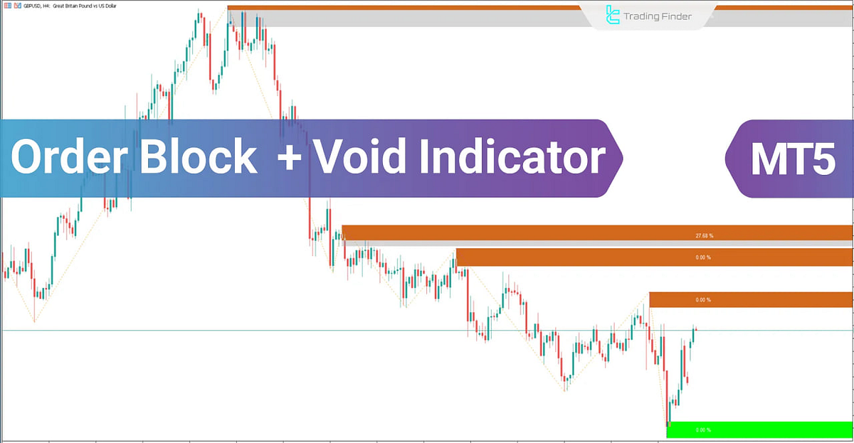 The Order Block + Void Indicator for MetaTrader 5, developed by TradingFinder, is a sophisticated tool designed to assist traders in identifying liquidity zones and visualizing them as order blocks.