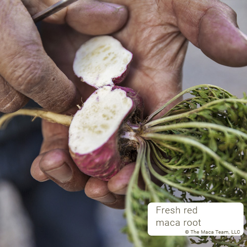 red maca root cut openIf you visit a maca farm in the mountains of Peru during harvest time, you’ll see that maca roots grow in a variety of colors. This is quite interesting because all maca roots come from the same seeds, grow in the same soils, and belong to the same species (lepidium meyenii a.k.a lepidium peruvianum). For 1,000s of years, this has not been an issue; all colors of maca were lumped together at harvest and then consumed as a mixture to boost energy and fertility. That changed in the late 1990s when researchers began to discover that the different colors of roots have slightly different nutritional profiles and potential benefits. Since then, maca has been separated into 3 main phenotypes: black, red and yellow. Even though we now make maca available in those 3 colors as well as in a traditional blend of all 3, red has certainly become a customer favorite over the years – and with good reason.  Discover all of the documented benefits of red maca. (https://www.themacateam.com/red-maca-benefits)