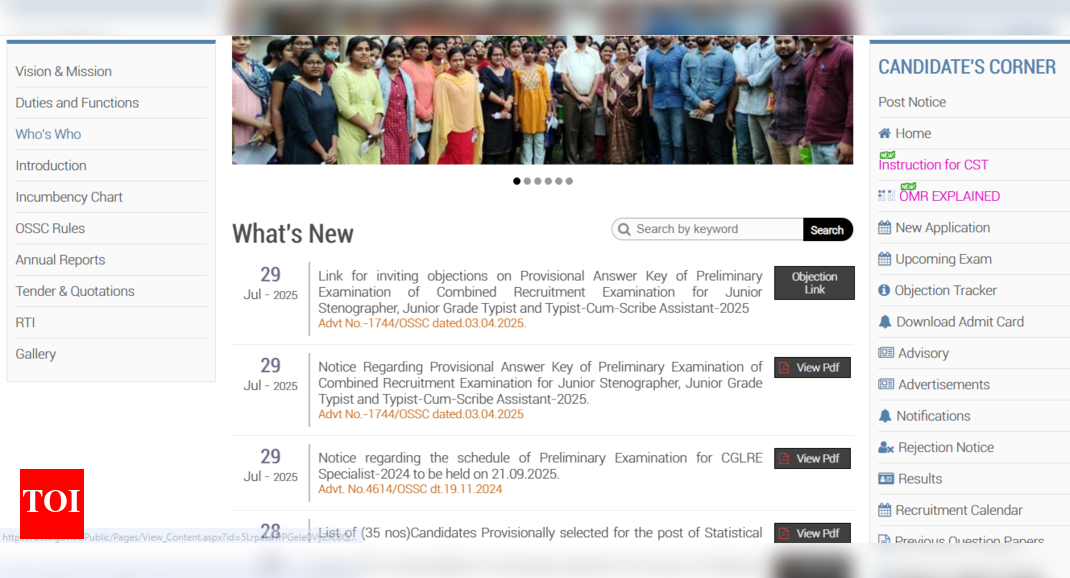 OSSC CRE answer key 2025: The Odisha Staff Selection Commission (OSSC) has released the provisional answer key for the preliminary exam of the Combined Recruitment Examination (CRE) for the posts of Junior Stenographer, Junior Grade Typist, and Typist-Cum-Scribe Assistant-2025. The examination was held on July 27, 2025, in accordance with Advertisement №1744/OSSC dated April 3, 2025. The answer key is now accessible on the Commission’s official website www.ossc.gov.in. Candidates who appeared in the exam can log in using their credentials to view the answer key and raise objections, if any.The OSSC has provided an online facility for candidates to file objections against any discrepancies in the provisional answers. The last date to submit objections is August 1, 2025. The Commission has clearly stated that objections must be made online only through the candidate’s login portal. No offline representations will be entertained.