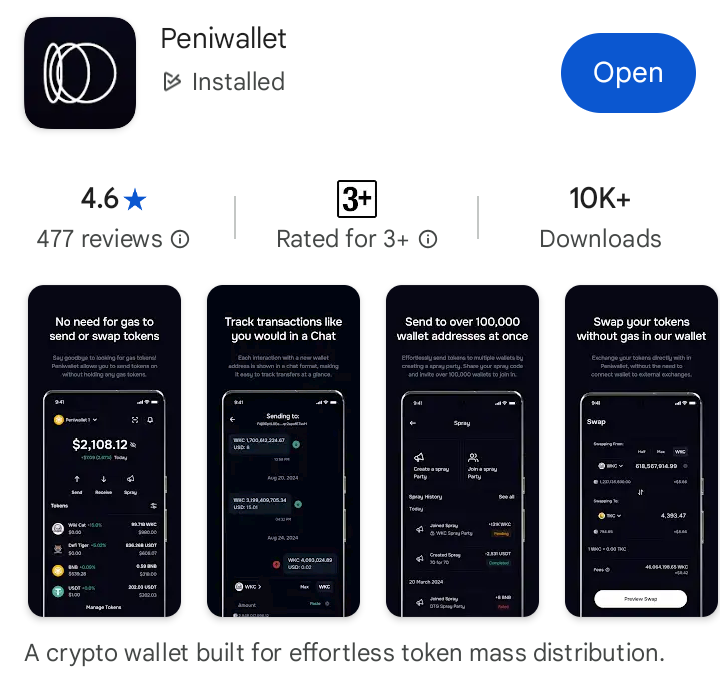 Reaching 10,000 Google Play Store downloads positions Peniwallet among serious mobile cryptocurrency applications with substantial user bases. This milestone reflects consistent daily download activity rather than isolated promotion spikes, indicating organic user discovery and recommendation-driven growth.