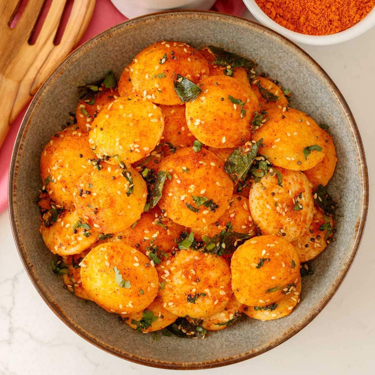 Idlis: Making this dish with small Idlis is optional. You can also use regular Idlis and chop them into bite-size pieces. Leftover idlis can also be used to make Podi Idli.