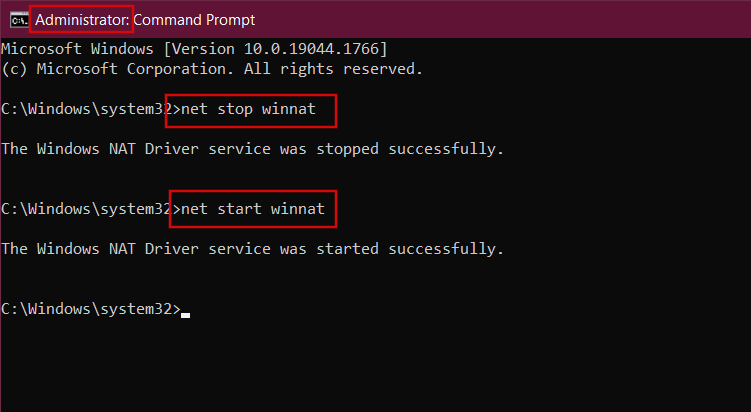 net start winnat