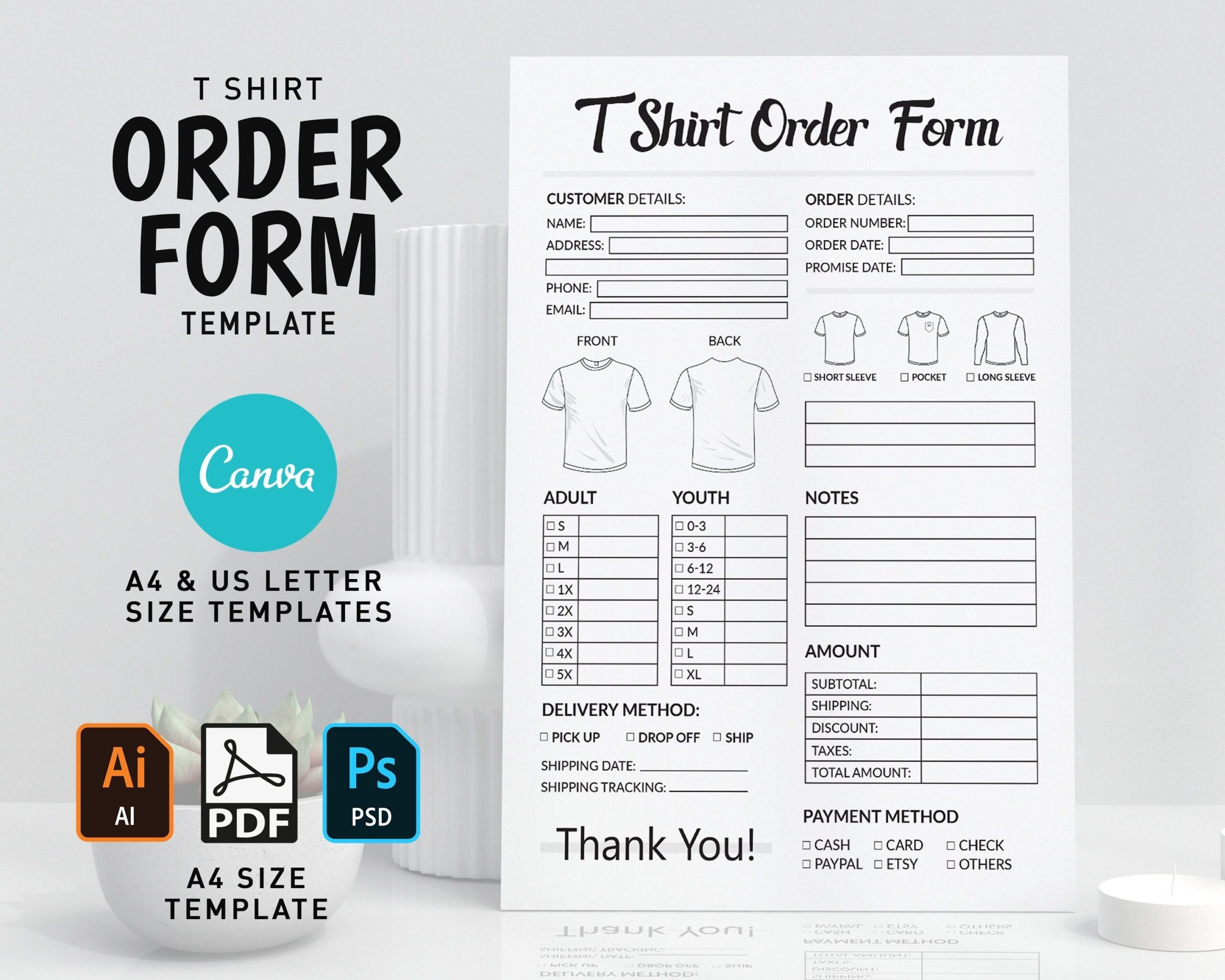Printable T-Shirt Order Form Template: Editable Canva Design (A4/US Letter)